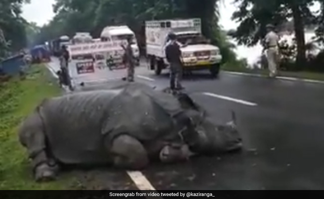 Watch: Tired Rhino Sleeps On Road At Flood-Hit Kaziranga, People Pass By Quietly