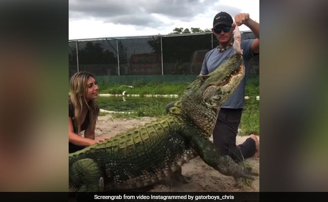 Christopher Gillette wanted an impressive video of Seven the alligator. What he ended up with, instead, was an adorable one after the gator missed an easy catch and walked away bashfully.