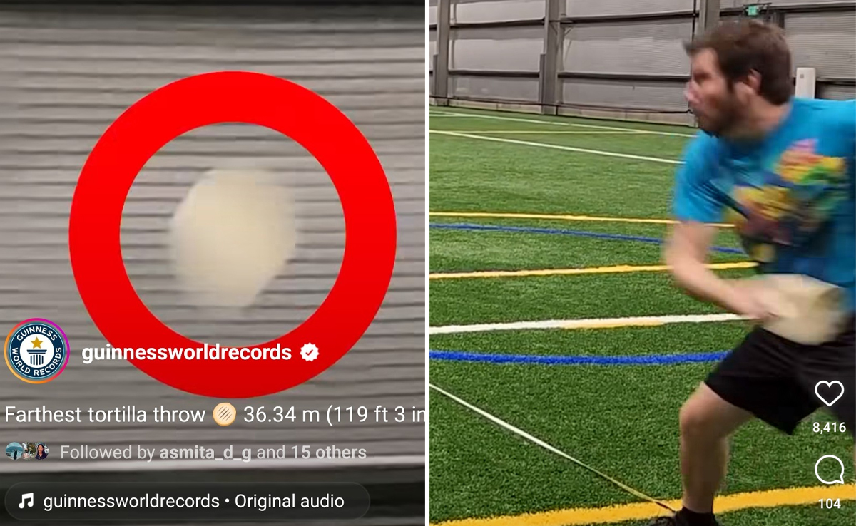 Aaron Nienaber achieved this feat in December last year, by throwing a tortilla 119 feet 3 inches (36.34 m) away. But the internet is not too impressed.