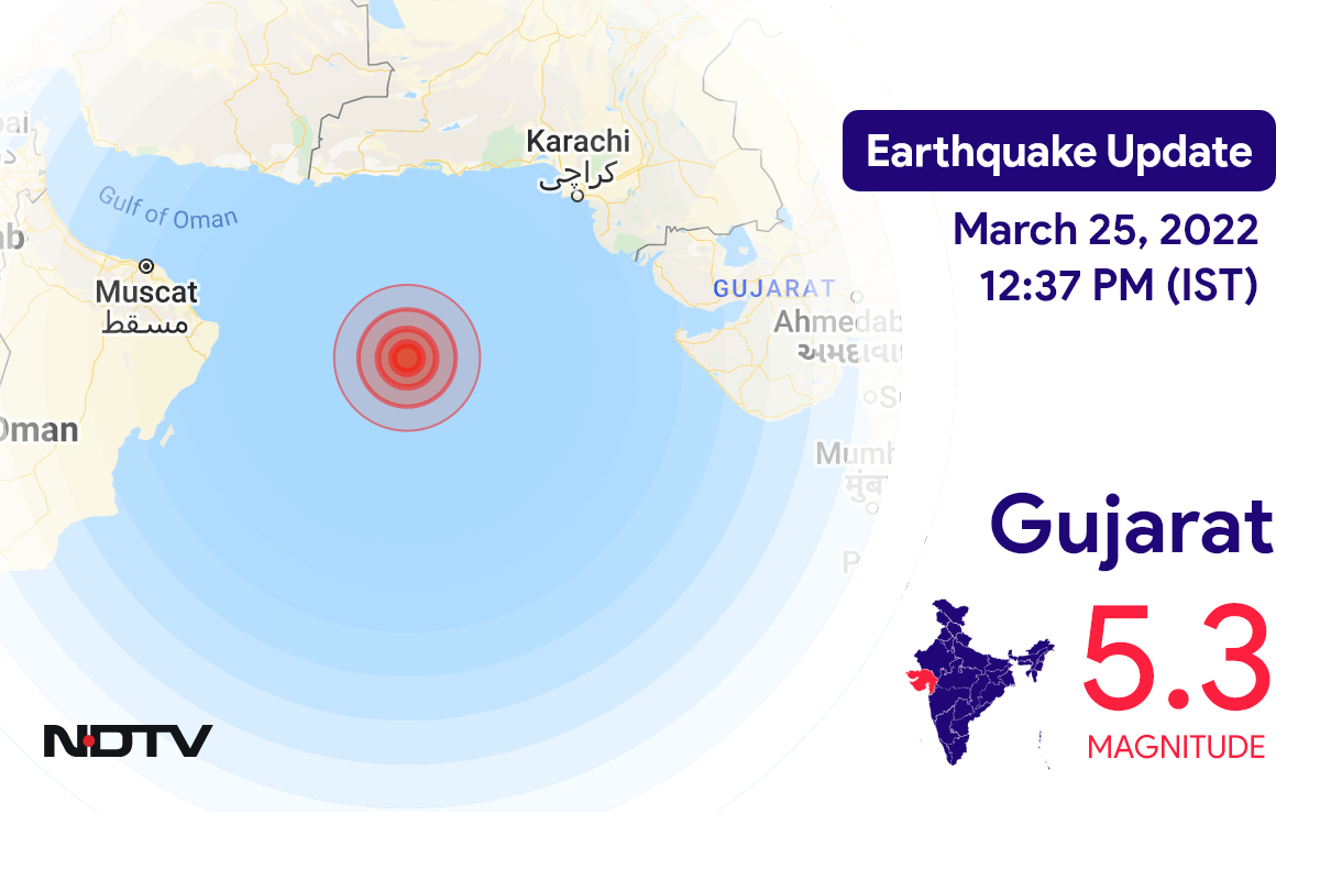 An earthquake of magnitude 5.3 was reported near Dwarka in Gujarat on Friday afternoon, according to India's National Center for Seismology.