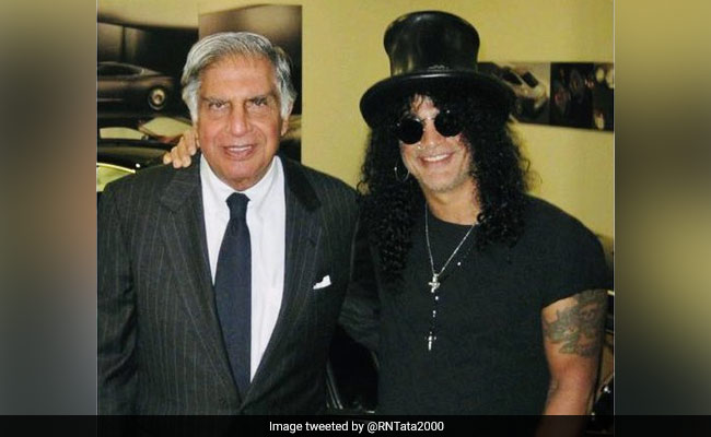 Industrialist Ratan Tata has shared a photo today with the lead guitarist of the American hard rock band Guns N' Roses, Slash.