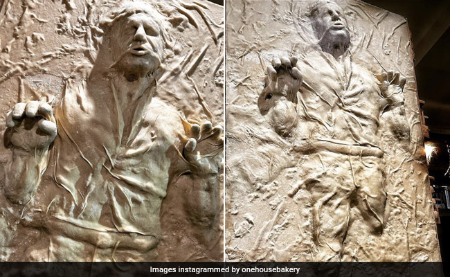 A bakery in the San Francisco Bay Area has created a six-foot character based on Han Solo from "Star Wars", appearing after being trapped in carbonite.