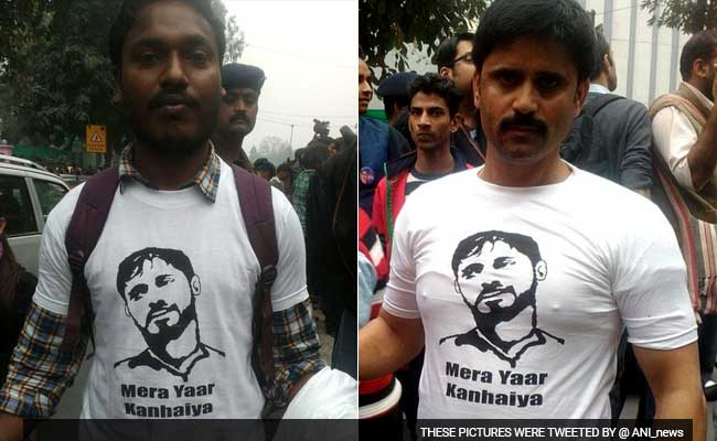Hundreds of people were seen on Thursday wearing t-shirts printed with the image of JNU student union president Kanhaiya Kumar at the protest rally in Delhi against his arrest, few of which were sold while some were distributed for free.
