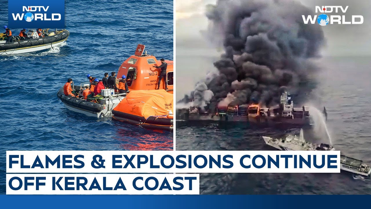 Indian Coast Guard ships on Wednesday continued to battle thick smoke after a massive blaze broke out aboard the Singapore-flagged container vessel MV WAN HAI 503 off the Kerala coast.