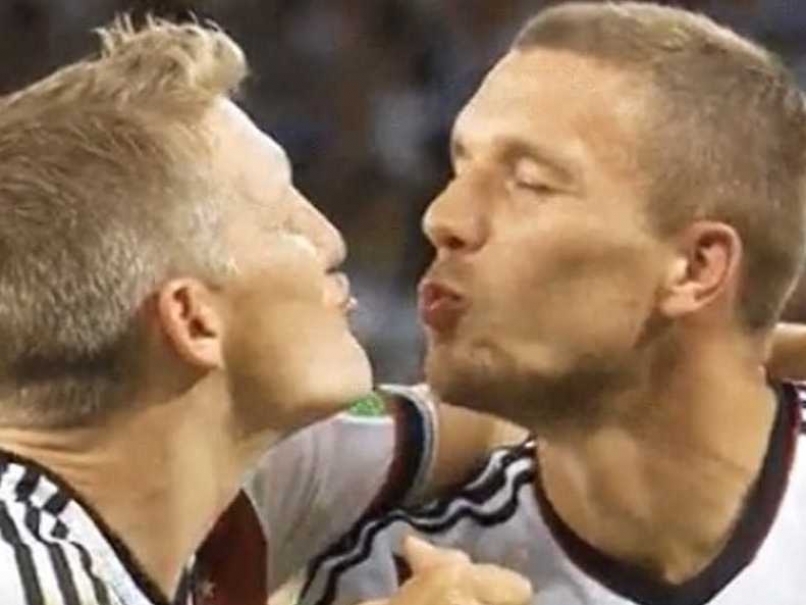 International Kissing Day was celebrated by Germany's top footballers Bastian Schweinsteiger and Lukas Podolski ahead of their Euro 2016 semifinal against France
