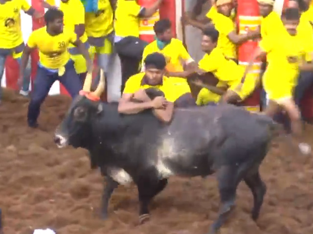 The popular bull-taming Jallikattu event entered its third and final day as it kicked off in Alanganallur area of Madurai in Tamil Nadu this morning amid concerns over animal cruelty as well as the pandemic.