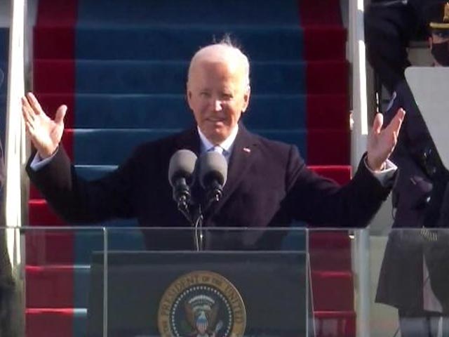Moments before Donald Trump took the oath of office on Monday, the camera panned to Joe Biden and his gesture amused everyone.