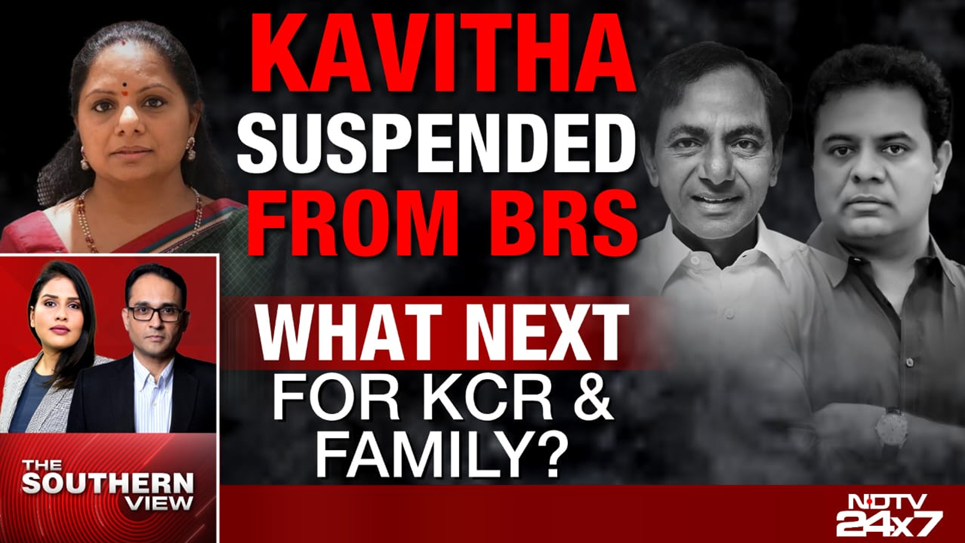 Telangana lawmaker K Kavitha has been suspended from the Bharat Rashtra Samithi - the party run by her father and former Chief Minister, K Chandrashekar Rao - after she publicly blamed T Harish Rao, her cousin, for the CBI probe against KCR.