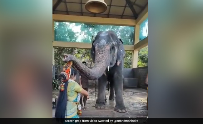 In a video shared on Instagram, the elephant is seen standing on a road crowded with vehicles and people.