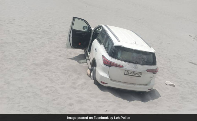 Couple Driving Toyota Fortuner On Ladakh's Sand Dune In Nubra Valley Fined Rs. 50,000