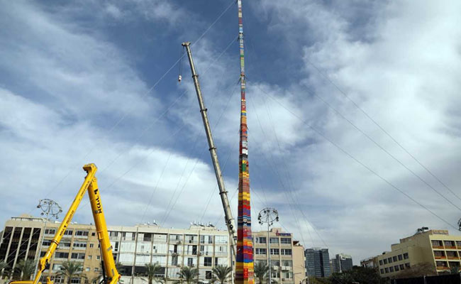 Tel Aviv residents have built a world record-contending, 36-metre (118ft) plastic brick tower, featuring more than 500,000 pieces, to honour a young cancer victim in the Israeli city.