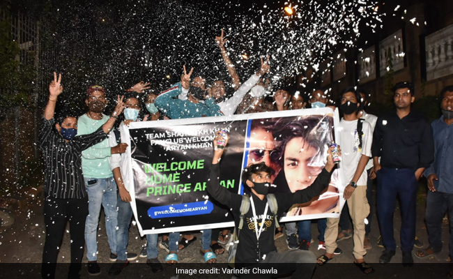 Superstar Shah Rukh Khan's fans gathered outside his iconic Mumbai residence - Mannat - to celebrate as the Bombay High Court granted bail to the actor's son Aryan Khan, three weeks after his arrest in the drugs-on-cruise case.