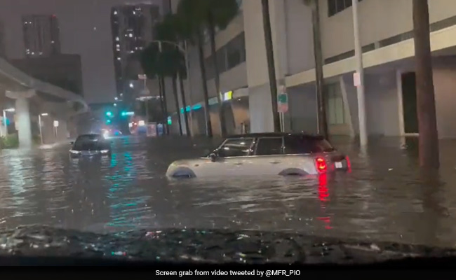 Flash floods have almost submerged cars on the roads of Miami, Florida. Amid the chaos, people have turned to Twitter to share videos of the situation on the streets.