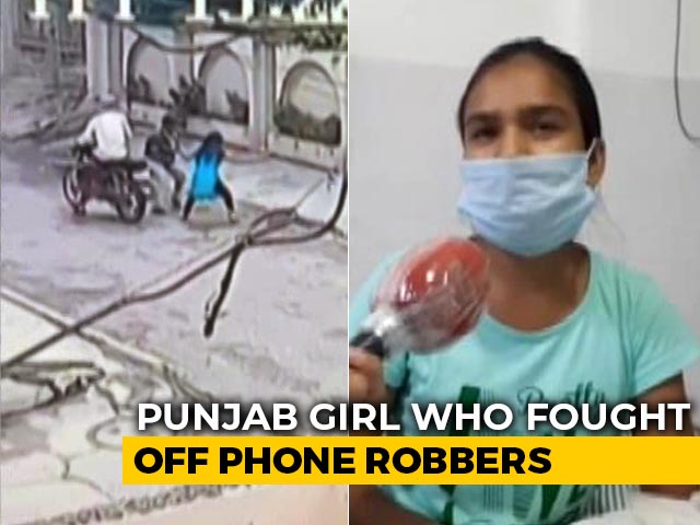 A teenage girl was attacked with a sharp weapon by two motorcycle-borne thieves who tried to snatch her mobile phone but she managed to pull down one of them off the bike, CCTV footage from Punjab shows.