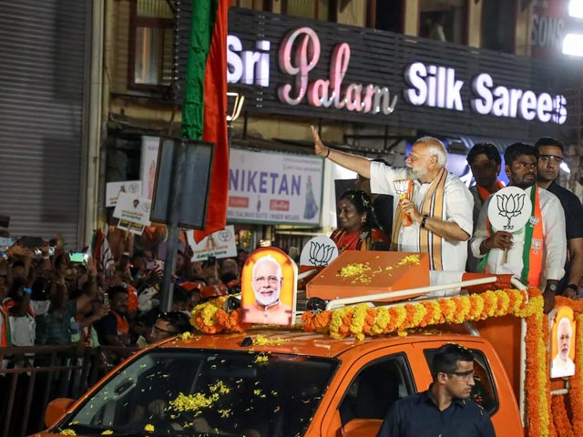 Prime Minister Narendra Modi on Tuesday took out a well-attended roadshow in the city's T Nagar locality, ahead of the April 19 Lok Sabha polls in Tamil Nadu.