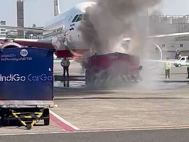 Video: Tow Van On Fire At Mumbai Airport. Narrow Escape For 85 On Plane