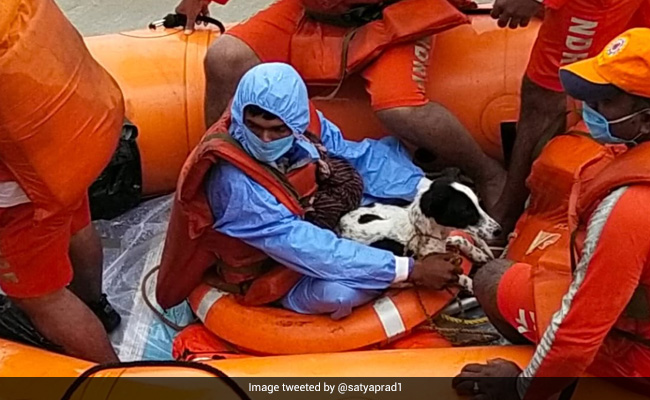 Amid heavy rains in Karnataka, relief workers are finding stories of hope and survival. One such example is a photo tweeted by the chief of the National Disaster Response Force or NDRF Satya Pradhan that captures the fighting spirit and compassion of people in the face of hardships.