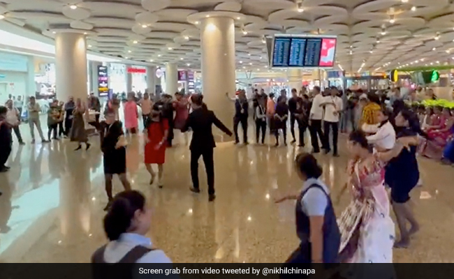 A video of people performing garba at Mumbai Airport has gone viral on social media. It was shared by music entrepreneur and DJ Nikhil Chinapa on Twitter.