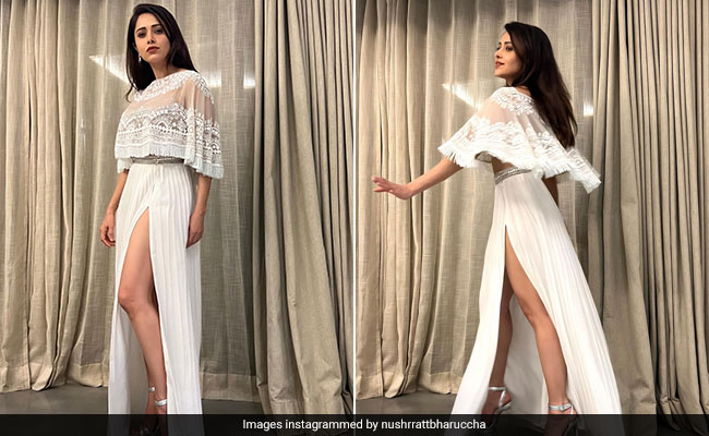 Nushrratt Bharuccha Is A Vision In Her White Cape Co-Ords With A Slit Skirt