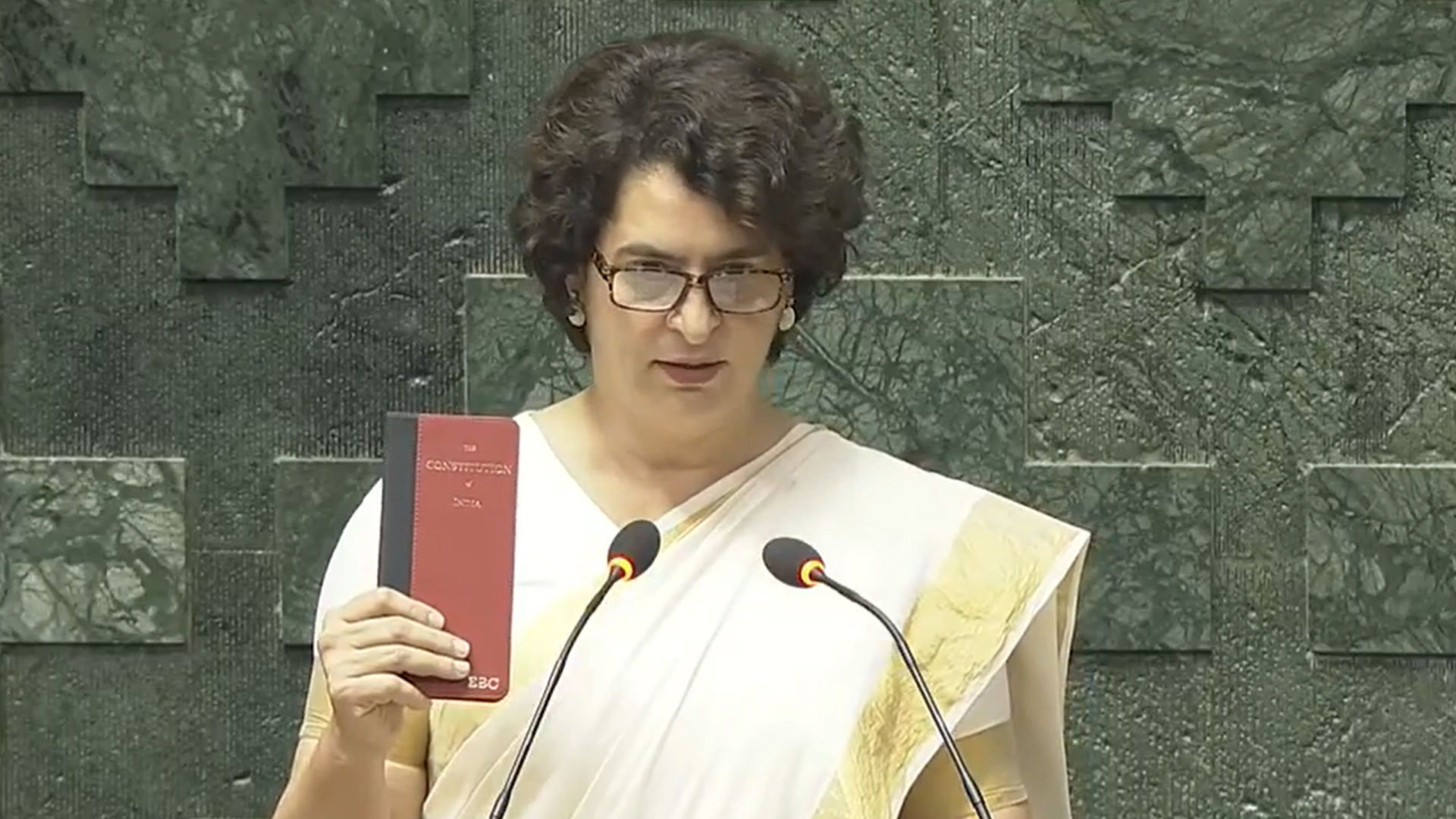 Congress leader Priyanka Gandhi Vadra was sworn in as the Lok Sabha member from Kerala's Wayanad Thursday morning, replacing her brother, Rahul Gandhi/.