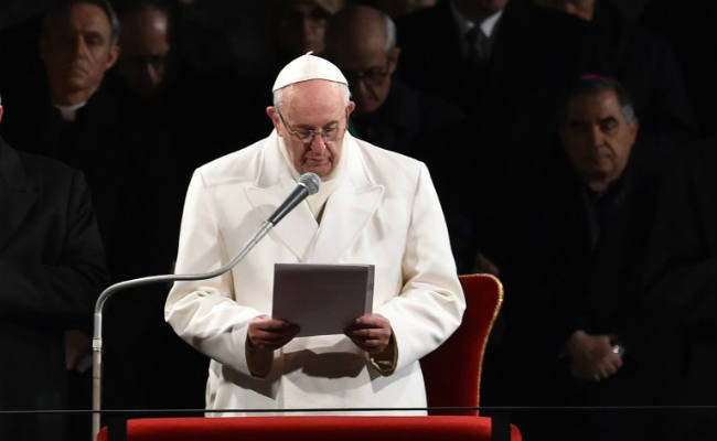Pope Francis decried what he called Europe's "indifferent and anaesthetised conscience" over migrants, during Good Friday prayers in Rome during which he also slammed paedophile priests, arms dealers, fundamentalists and religious persecutors.