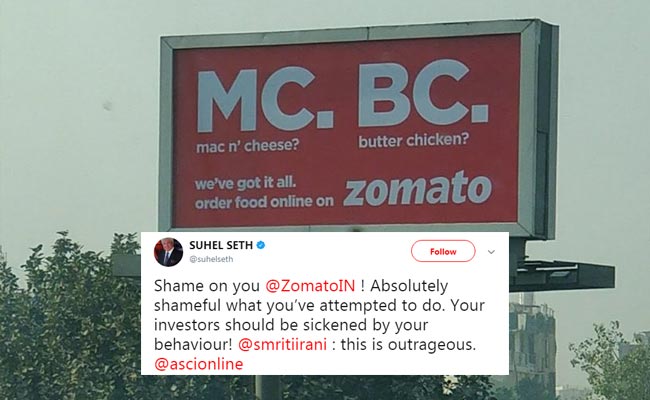 Commentator and author Suhel Seth took to Twitter about two hours before writing this to call out Zomato for what he terms a 'shameful' ad.