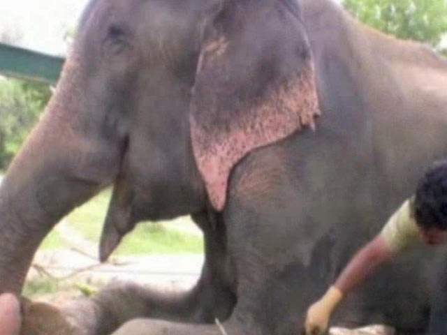 Phoolkali, a female elephant who was rescued from her abusive employer and rehabilitated at an animal shelter in Mathura, Agra is now happy enough to paint!