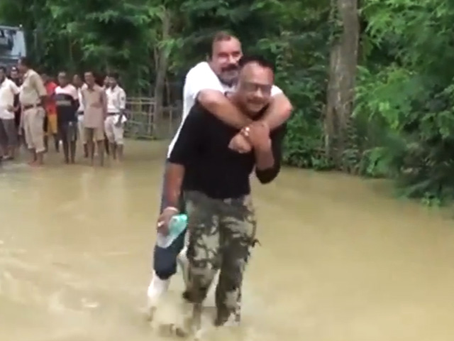 Watch: Assam BJP MLA Slammed For Piggyback Ride During Flood Review