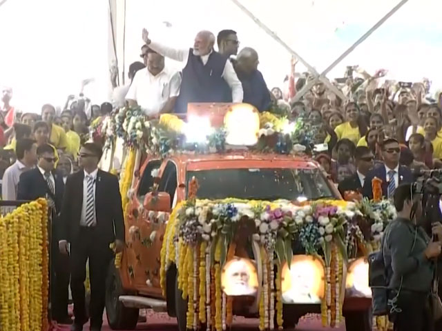 Prime Minister Narendra Modi held a roadshow in Rajkot, Gujarat on Sunday.