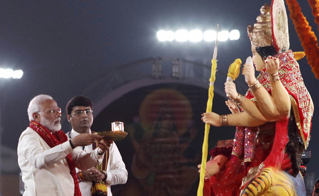 PM Modi Worships Goddess Amba, Visits ''Garba'' Venue In Ahmedabad