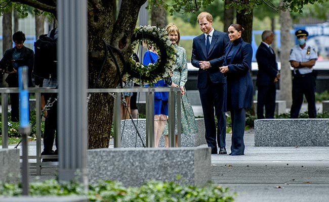Britain's Prince Harry and wife Meghan Markle kicked off a trip to New York City with a visit to the "Freedom Tower" and 9/11 Memorial on Thursday.