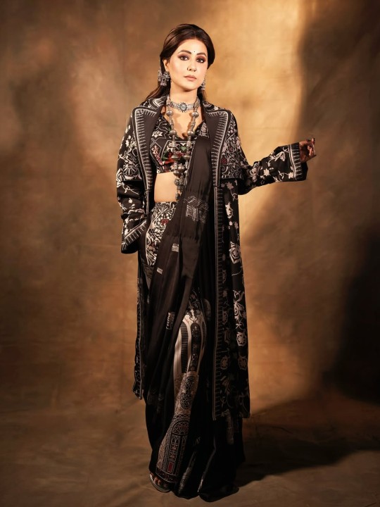 Shilpa Shetty had her saree not sorry mode on drape in a red georgette saree with ajrakh details from the shelves of clothing label Nitya Bajaj