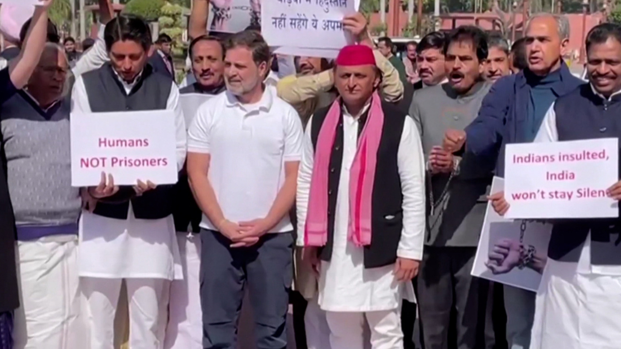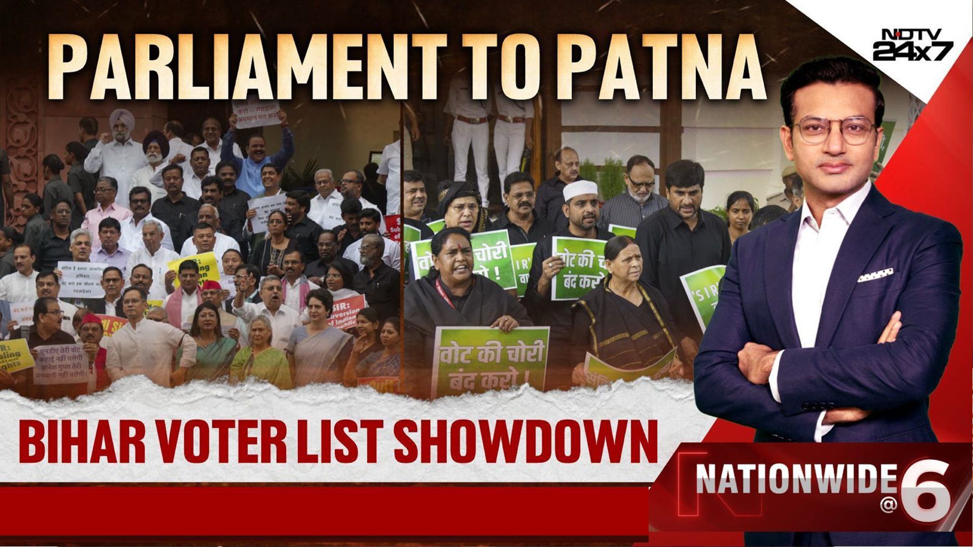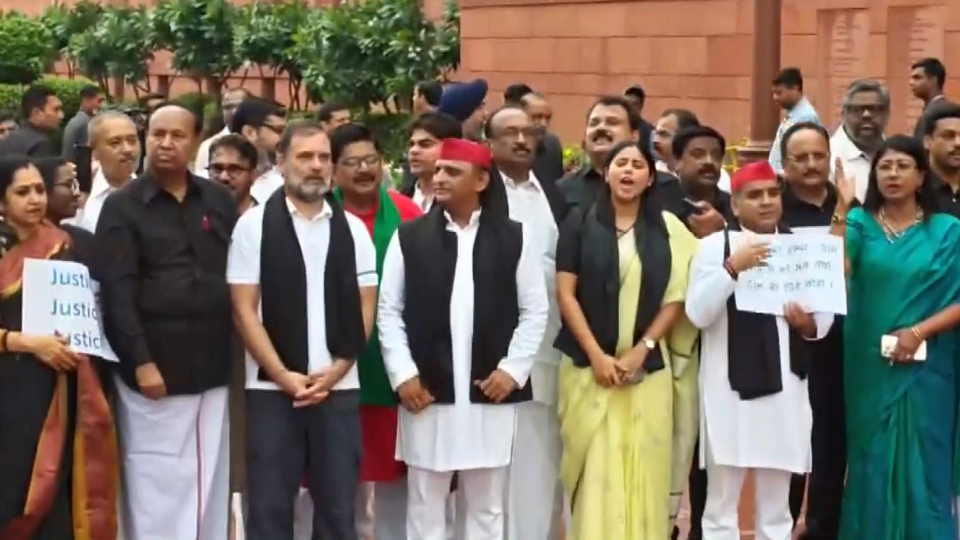 Opposition MPs, including Congress leaders Mallikarjun Kharge, Rahul Gandhi and Priyanka Gandhi, protested and raised slogans against the Special Intensive Revision (SIR) being carried out in Bihar.