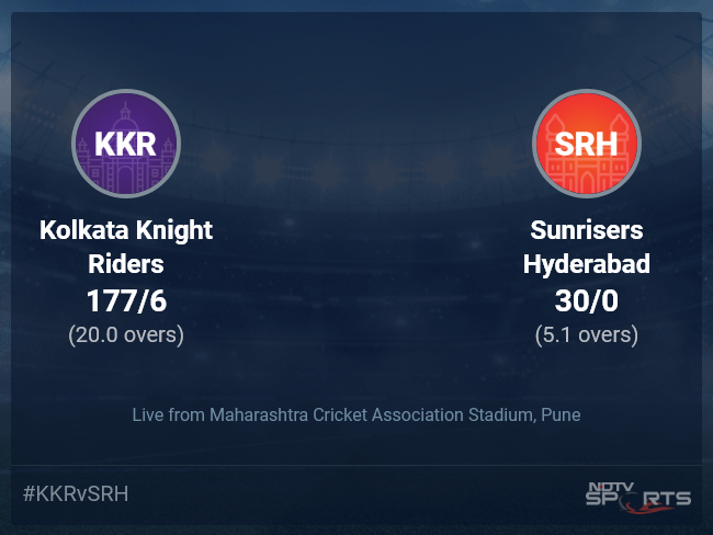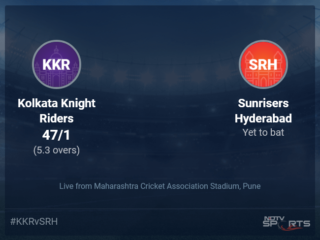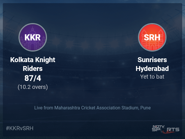 Live Updates of Today Match between Kolkata Knight Riders vs Sunrisers Hyderabad from Maharashtra Cricket Association Stadium, Pune. Check commentary and full scoreboard of the match.