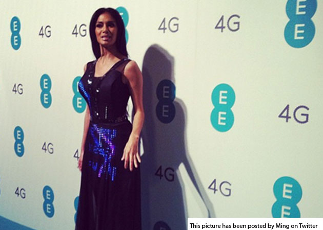 Former Pussycat Dolls star Nicole Scherzinger combined technology with fashion and wore the UK's first 'Twitter dress' at the launch of the new 4G mobile network.