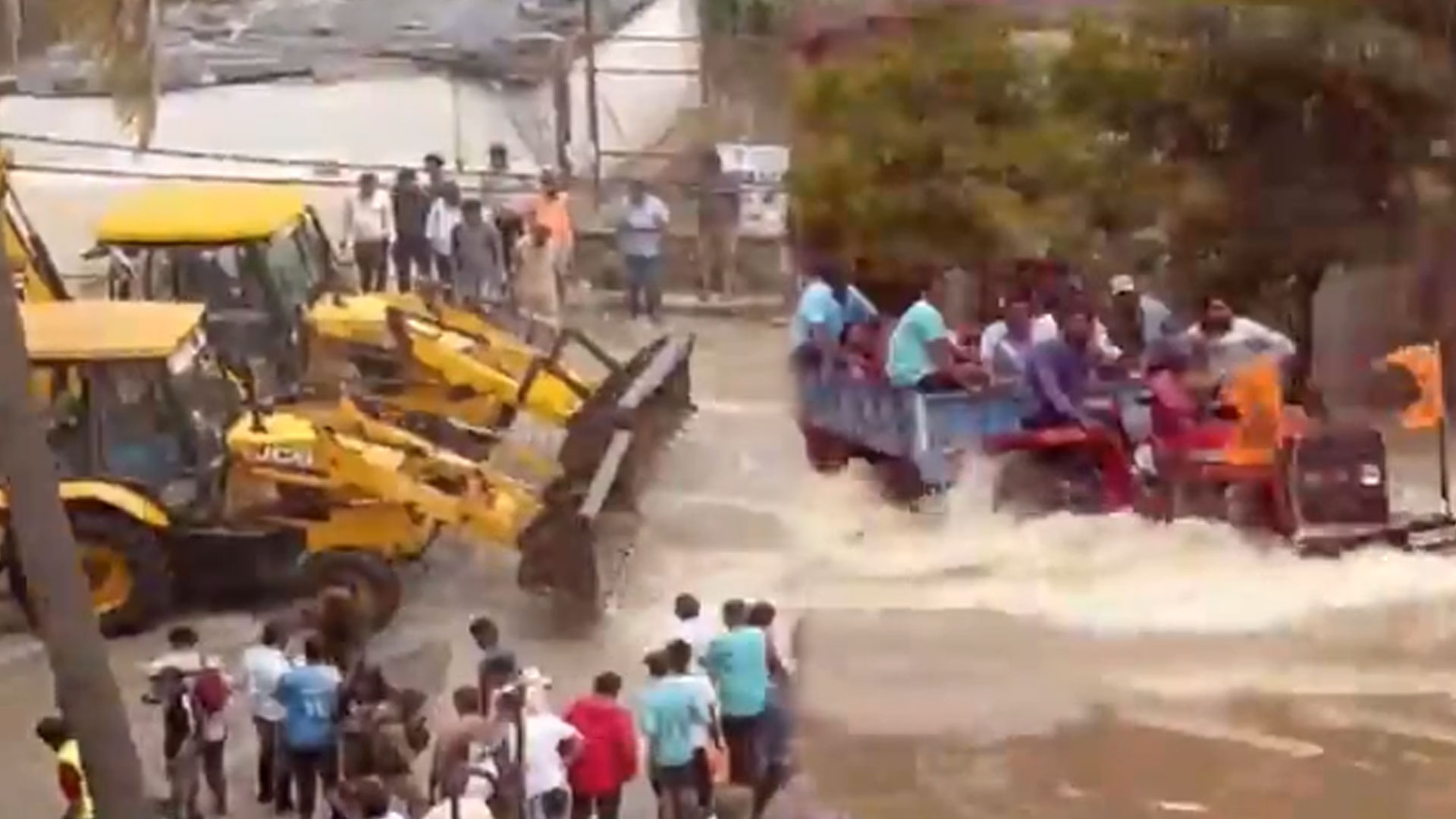 The 12-second clips shows water cascading from multiple sections of the flyover, resembling a waterfall, as vehicles pass underneath.