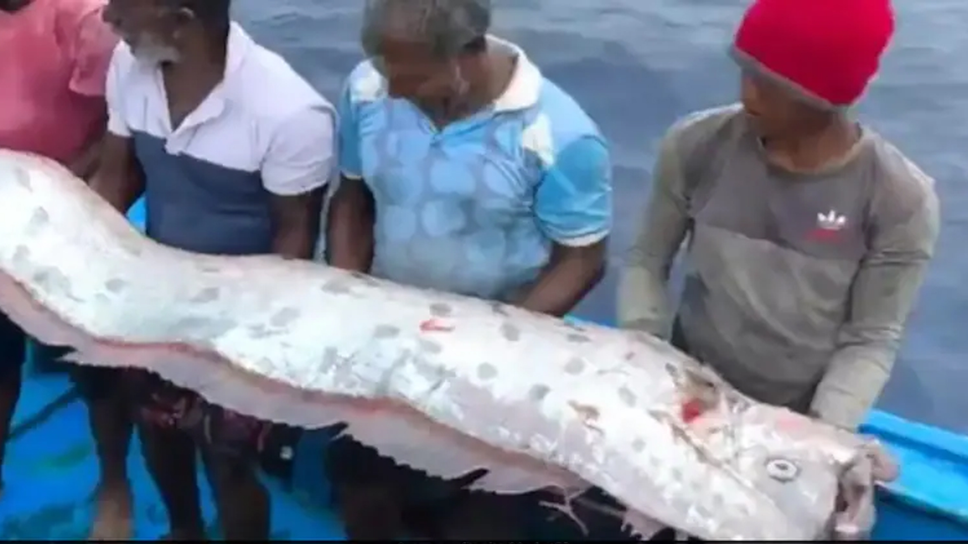 An oarfish, also known as the "doomsday fish", was recently caught off the Tamil Nadu coast. This deep-sea creature, rarely seen near the surface, is thought to be a warning of natural disasters.