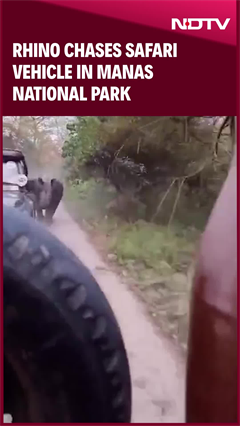 In what can only be described as every safari goer's worst nightmare come to life, a rhinoceros at Manas National Park in Assam terrified unsuspecting tourists when it suddenly emerged from a bush and started chasing their vehicle.