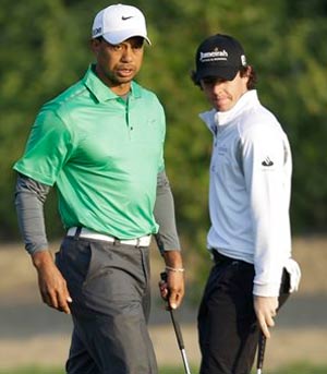 Rory McIlroy shot a 5-under 67 in the opening round on Thursday at the Abu Dhabi Golf Championship for a share of the early clubhouse lead, three strokes in front of playing partner Tiger Woods.