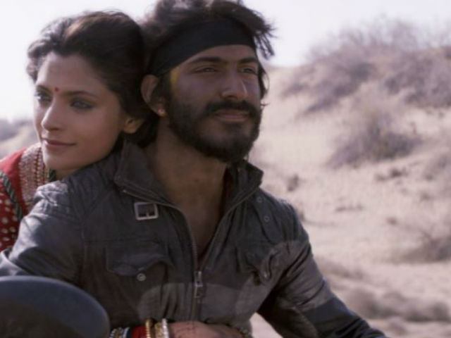 Mirzya couple Harshvardhan Kapoor and Saiyami Kher are lovers who appear to have eloped on the Saiyami's wedding day. The runaway bride and her swain make a break for it across a desert on his bike