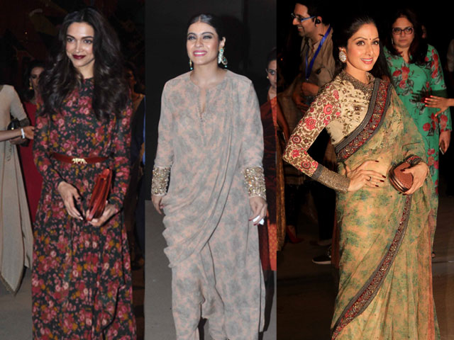 In Sabyasachi's Front Row: Deepika Padukone, Sridevi, Kajol. Dressed in Sabya