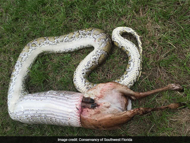 It seems a snake at the Collier-Seminole State Park in Florida didn't get the memo on not biting off more than one can chew. Graphic photos, definitely not meant for the fainthearted, show a Burmese python that devoured a white-tailed deer fawn that outweighed it.