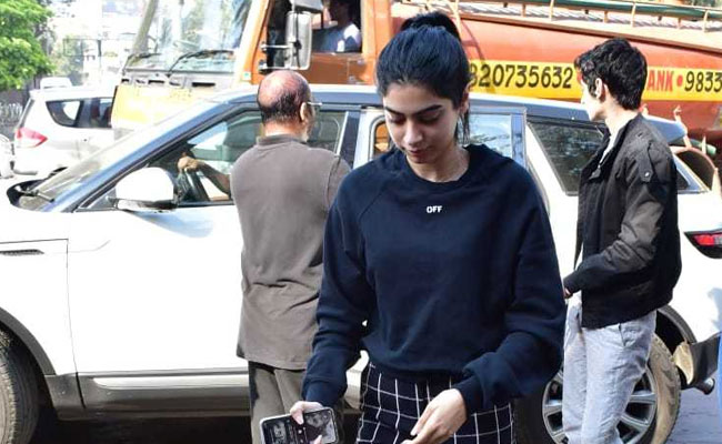 Dressed in a blue and white checked pants and a navy blue sweatshirt, Khushi looked quite stylish