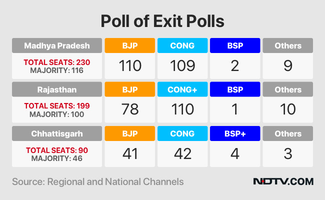 NDTV Poll Of Polls Results Highlights: Advantage BJP In Rajasthan, Congress Gains In Telangana