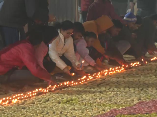 Ahead of the grand consecration ceremony of the Ram Temple, diyas or earthen lamps, painted in different colours, formed images of Lord Ram and the Ram Janmabhoomi Temple at the Saket University in Ayodhya.