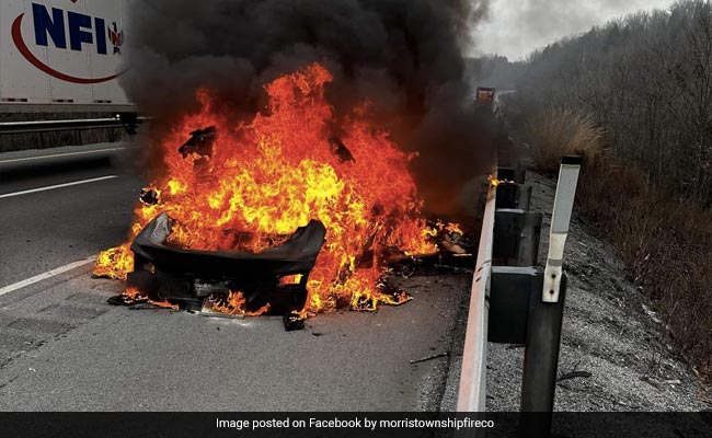 Tesla Bursts Into Flames On US Highway, Photos Show Unrecognisable Car