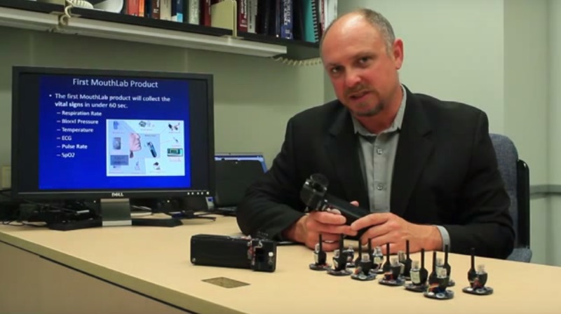Called MouthLab, the device uses mouthpiece and thumb pad sensors to quickly test a patient's blood pressure, breathing, blood oxygen, heart rate and heartbeat pattern.