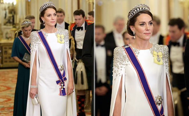 Kate Middleton Paid Homage To Princess Diana By Donning This Lover's Knot Tiara At The Buckingham Palace Reception