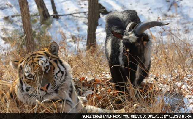 An unlikely friendship between a tiger and a goat who was supposed to be his dinner has charmed Russia.