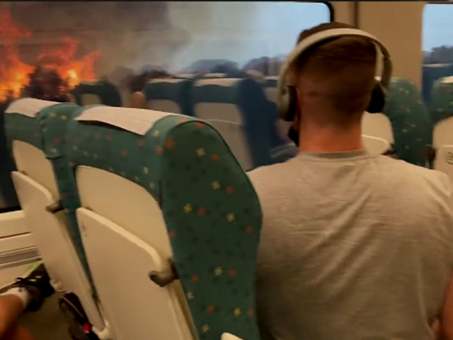 Passengers on board a train in Spain found themselves surrounded by flames on Monday as a wildfire tore through vegetation near the track in the north-western province of Zamora.